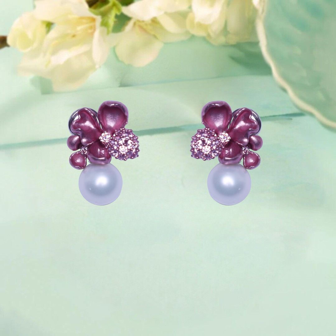 The Blush Orchid Pearl Drops showcase soft pink petals with crystal accents and a classic white pearl. Lightweight and feminine, they’re perfect for weddings, brunches, or adding enchanting elegance to any look.