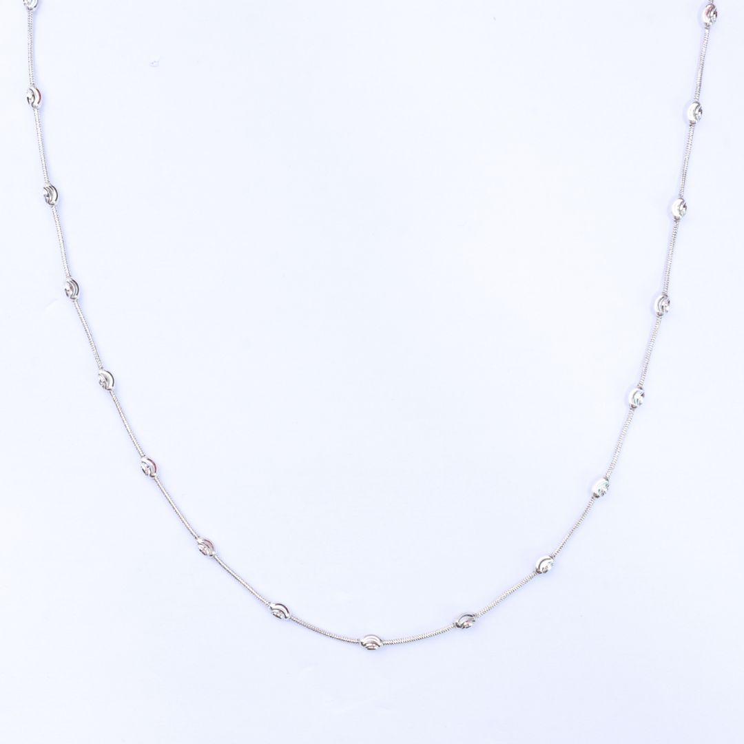 Add a touch of refined simplicity to your jewelry collection with the Celeste Sterling Chain. This sleek and versatile piece features evenly spaced, textured silver beads set along a smooth, high-polish chain.