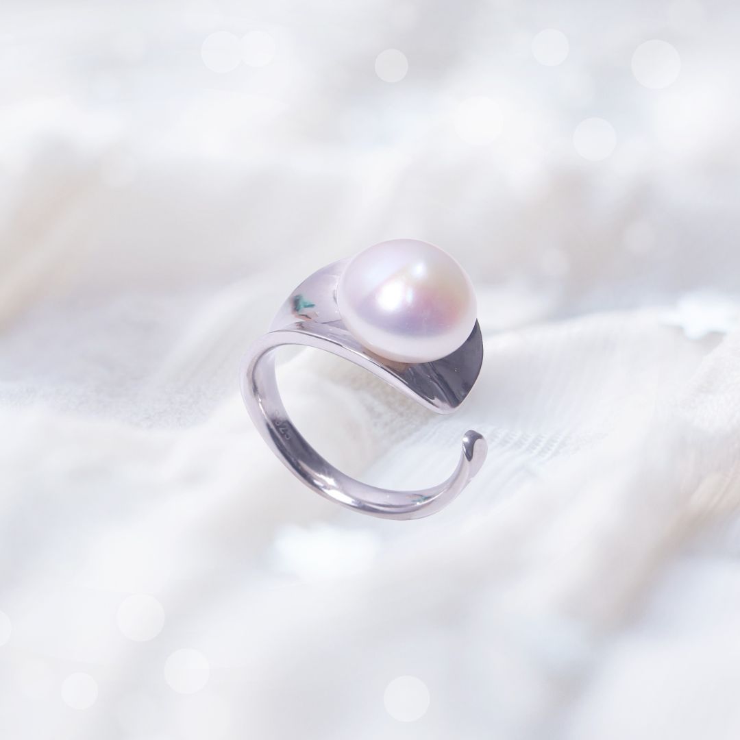 Embrace refined elegance with our Luminous Pearl Wave Ring. A lustrous freshwater pearl rests within a sculptural, wave-like sterling silver band with a hammered finish, blending contemporary artistry with timeless sophistication for a truly unique, standout piece.